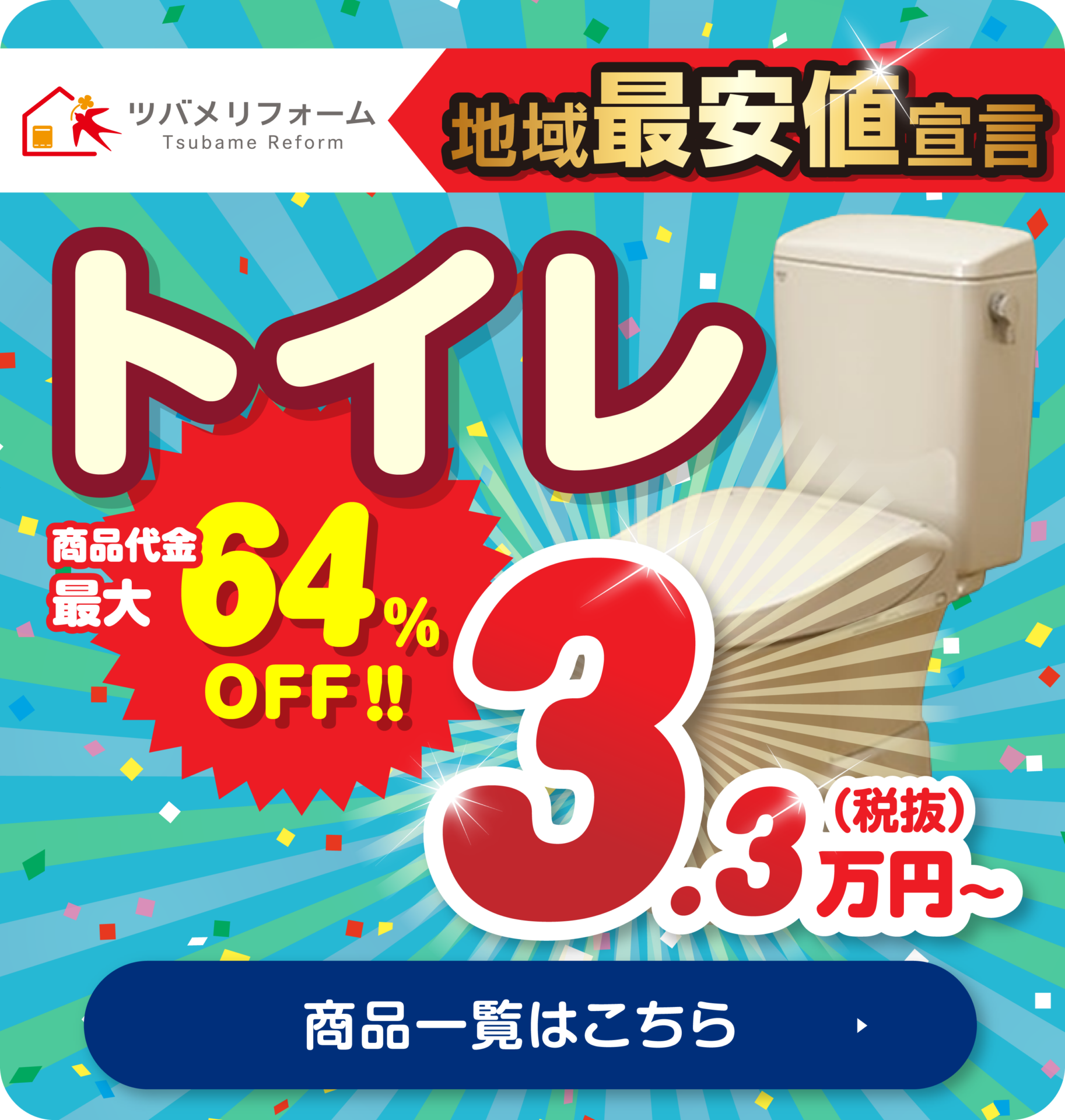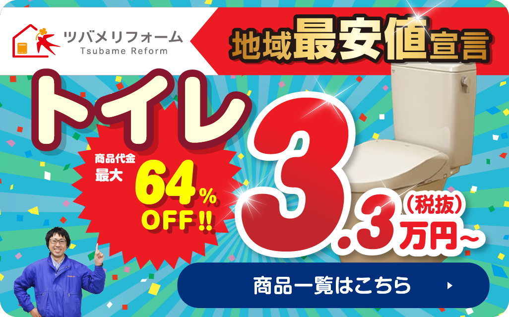 ツバメリフォームは商品代金+工事費+その他処分費用等、諸々の諸経費をすべてコミコミ価格でご案内しています。