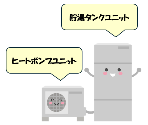 エコキュート/給湯器は、「ヒートポンプユニット」と「貯湯ユニット」の2つの主要な部分から構成されています。