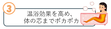 湯冷めしにくい: 体の芯から温まることで、お風呂上がりもポカポカ感が長続きし、特に寒い季節の湯冷め対策に有効です。