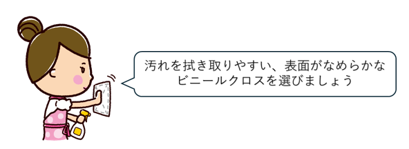 一方で、表面がなめらかなビニールクロスは、汚れを拭き取りやすい特徴があります。