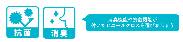 そのため、消臭機能や抗菌機能が付いたビニールクロスを選ぶことで、清潔な状態を保ちやすくなります。