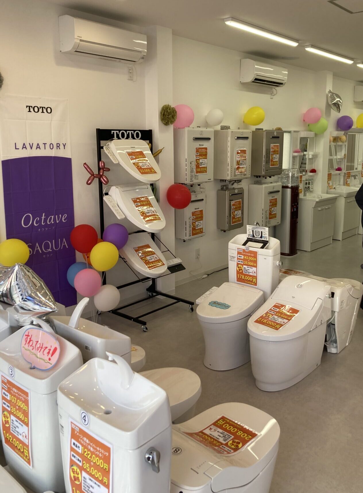 当ショールームでは、トイレ・キッチン・浴室・洗面化粧台・給湯器などの設備を、実際に「見て・触れて・比べて」いただけます。